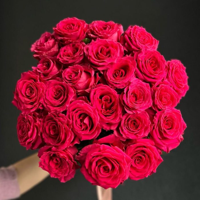 розы одноголовые – 25 шт.Атласная лента – 1 шт.